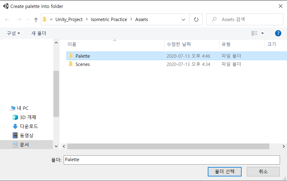 사각형(Tilemap), 육각형(Hexagonal), 등각 투상도(Isometric) 등 여러 종류의 타일맵이 있는데, 여기에서 아이소메트릭 타일맵을 선택해주도록 한다.